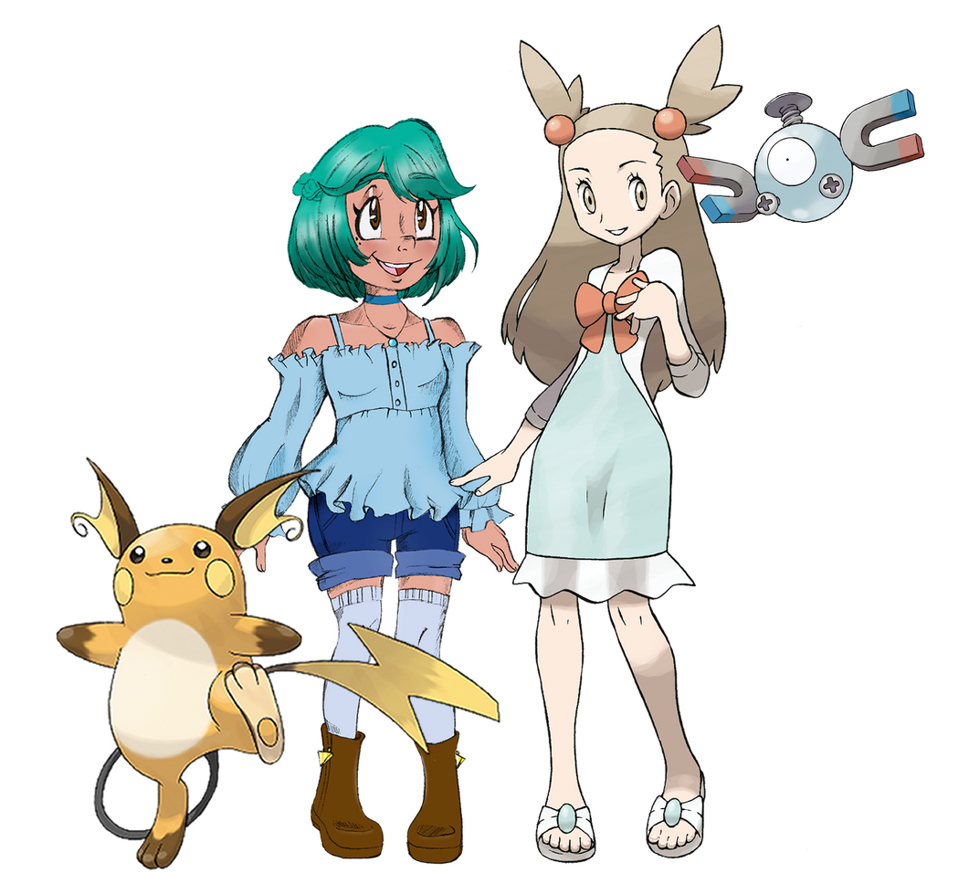 Anabel was the agent assigned to Jimena's case, after having rescued her from her emergence on the Alolan coast as a Faller; the victim of an Ultra Wormhole, much like Anabel herself. Jimena admires her greatly, as she is the type to fall for people who don't look down on her at her lowest. Jimena's biggest secret is that Anabel has been the only person who witnessed her have a complete breakdown when she came to after she was recovered from the coastline after she fell. Because of this, she can drop her facade around Anabel much more easier than other people. She feels very safe around Anabel, yet she is still unsure of how to convey this feeling to her in earnest. They both seem to attract the attention of certain Ultra Beasts, so they tend to run into each other very often. Jimena has grown to be somewhat protective of Anabel, only wishing she had the battle prowess to prove it, as she is merely a novice, still learning Trainer.Both Anabel and Jimena see very eye to eye on their shared struggle on living with memory loss as a result of being Fallers. They both seem to have lost memories that are more specific rather than an outright case of total amnesia. However, this is where much of their similarities end. Jimena's laissez faire and fun-loving energy often gets in the way of serious and stern Anabel's habitual tendency to devote most of her waking hours to her job. As thus, she tends to brush off the free spirited woman's advances fairly often. Jimena just earnestly wishes to see her smile more often, and will always invite her over for a drink after work, even though the answer is usually no. But these interactions and attempts at reaching out are something that Anabel never takes for granted or forgets.This pairing is very much a "right person, wrong time" (at least for now) type of situation. In truth they know that they need to wait for their lives to settle before they commit to anything serious. "Let's meet for drinks after work sometime" becomes their way of telling one another that they're thinking about each other. It is the currency of their budding relationship. "I know you'll say you're busy but being able to have the opportunity to even ask you is all I ever look forward to." Jimena's words resonate within Anabel and she knows to rely on them when her job and the distance between them is too much. How they wish to frame their relationship in the meantime, and who they want to be aware of it is wholly up to them.